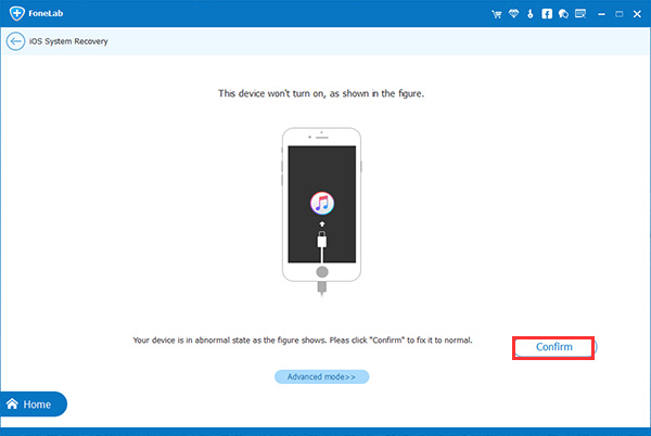 Fase 2: FoneLab automaticamente rileverà che il tuo iPhone non è in modalità normale e ti avviserà che bisogna riavviare il dispositivo (cliccando su CONFERMA). Poi devi solo seguire i passi indicati dal software e otterrai il tuo iPhone nuovamente funzionante nella sua modalità standard.